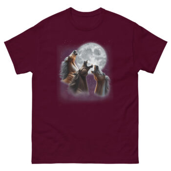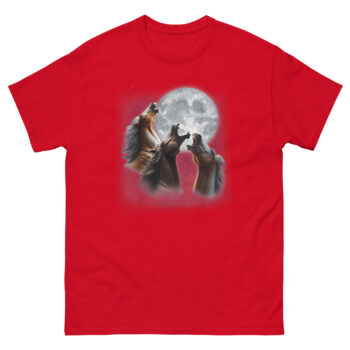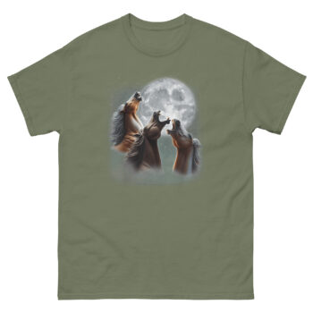 Ready to give the wolves a run for their money? The 3 Horses Howling at The Moon T Shirt is your ultimate parody horse shirt for the equestrian with a sense of humor. This majestic celestial apparel is ideal for barn nights, internet culture fans, or anyone who appreciates that sometimes the best art makes you smile twice, once for the beauty, once for the joke. Don’t wait to howl at the moon in style, click ‘Add to Cart’ now to get your official three horse moon tee delivered before the next full moon rises.