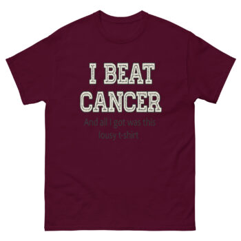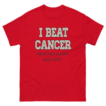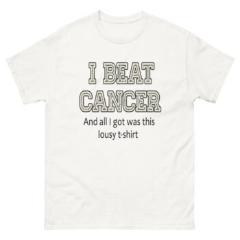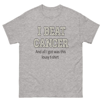 Beating cancer is one of life’s most profound victories. The journey changes you, and sometimes, the most powerful way to talk about it is with a little humor and a lot of heart. This cancer survivor gift shirt is designed to do exactly that. It starts with a bold declaration “I BEAT CANCER” and finishes with a wink: “And all I got was this lousy t-shirt.” This isn’t just a motivational quote t-shirt; it’s a wearable badge of honor for those who have faced a great challenge and emerged with their spirit intact.