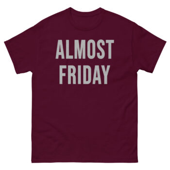 Click ‘Add to Cart’ now to claim your own Almost Friday shirt and turn the countdown into the best part of your week!