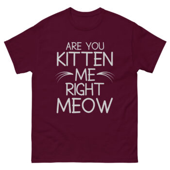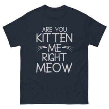 Let’s be honest – cat people aren’t just pet owners, they’re members of an exclusive club with their own language. And nothing captures that feline-loving spirit better than our “Are You Kitten Me Right Meow” cat t-shirt. This isn’t just another meow pun shirt – it’s a bold declaration of your cat obsession with a healthy dose of sarcasm.