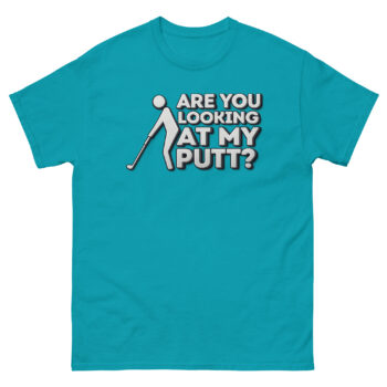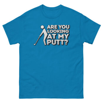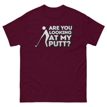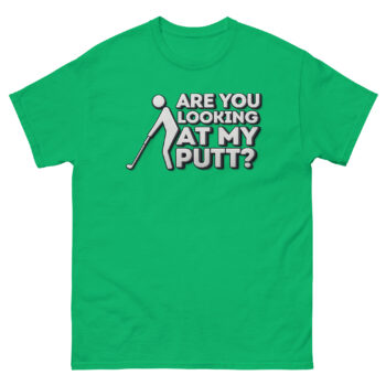 We created Are You Looking at My Putt T Shirt for the golfer who knows that a little laughter makes a bad round better and a good round unforgettable. It’s all about the universal chuckle that comes from the putting green’s most awkward posture.