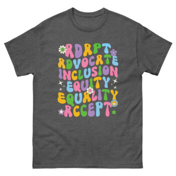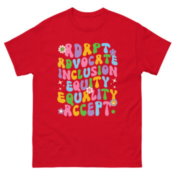 Celebrate neurodiversity and spread powerful messages of support with this bold and colorful autism advocacy t-shirt. Featuring retro-style lettering with empowering words like “Adapt,” “Advocate,” “Inclusion,” “Equity,” “Equality,” and “Accept,” this shirt is perfect for raising awareness, showing support, and sparking meaningful conversations. Designed for comfort and visibility, it’s ideal for Autism Awareness Month, special events, or everyday wear.