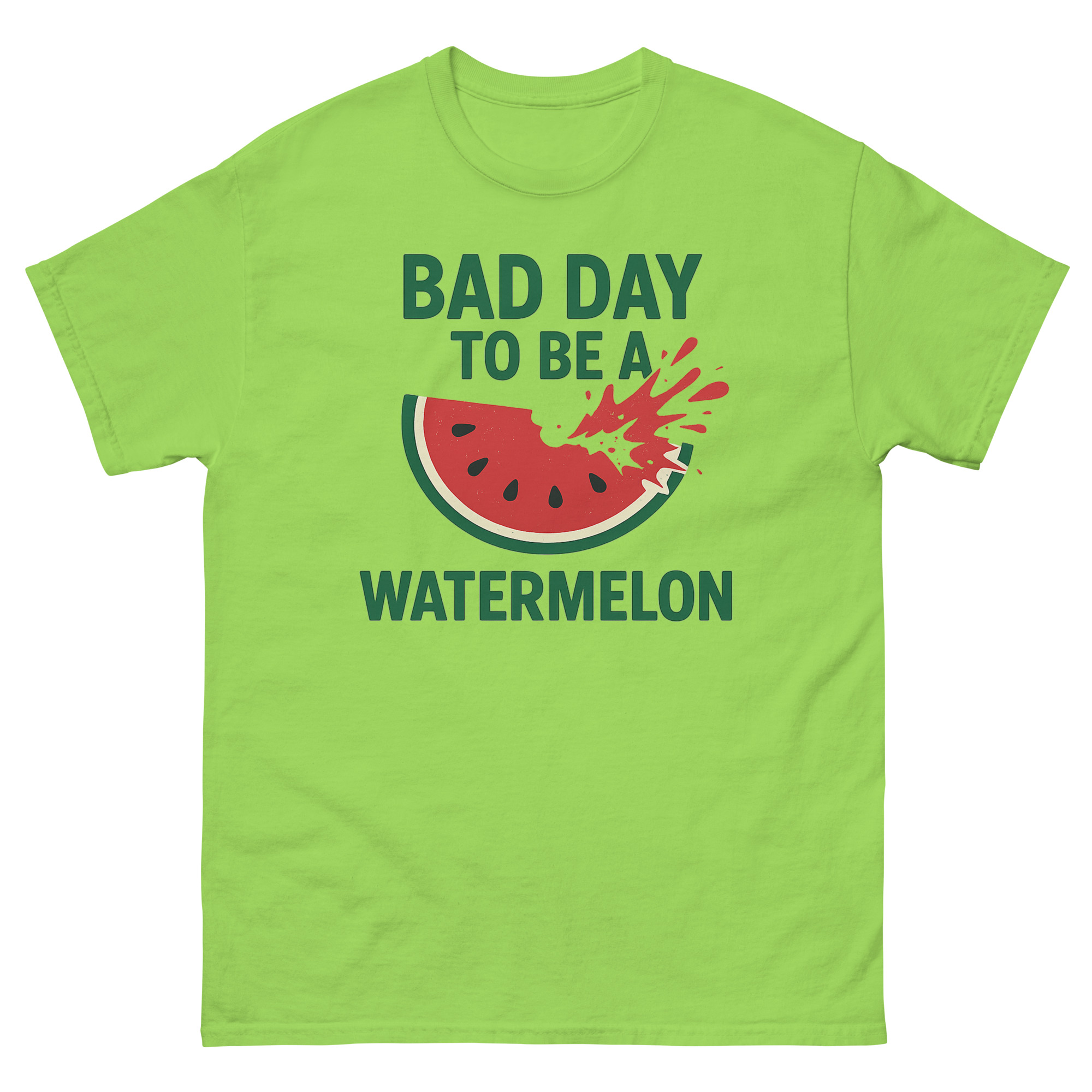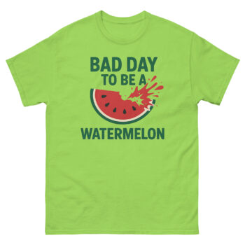 Why wear a boring shirt when you can wear a story? The Bad Day To Be A Watermelon Shirt is more than apparel; it’s a membership to the club that finds joy in loud, messy, summer fun. It’s a tribute to satisfying destruction and the camaraderie found in shared, playful chaos.