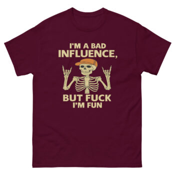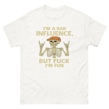 Bad Influence T Shirt: Funny Skeleton Party Tee – Rebellious Slogan Shirt