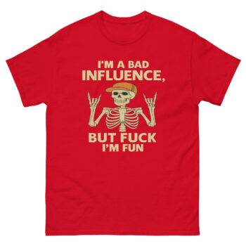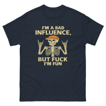 Let’s be honest: every great group of friends has one—the person who plans the adventure, says “yes” to the crazy idea, and turns a normal night into an unforgettable story. This Bad Influence T Shirt is their official uniform. It’s more than just a funny party shirt for outgoing adults; it’s a bold declaration of personality. Featuring a mischievous skeleton and a brutally honest slogan, this tee is the ultimate sarcastic skeleton graphic tee for extroverts who own their reputation with pride.