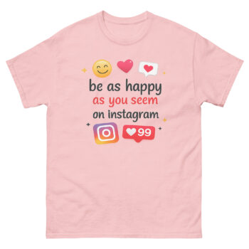 The be as happy as you seem on instagram shirt is more than just a fashion statement, it’s a reminder to live authentically. This bold yet cheerful tee combines humor, positivity, and social commentary, making it perfect for anyone who wants to express themselves with style. Whether you’re searching for social media reality check clothing, aesthetic mental health graphic tees, or even a funny influencer culture parody shirt, this design delivers both meaning and comfort.