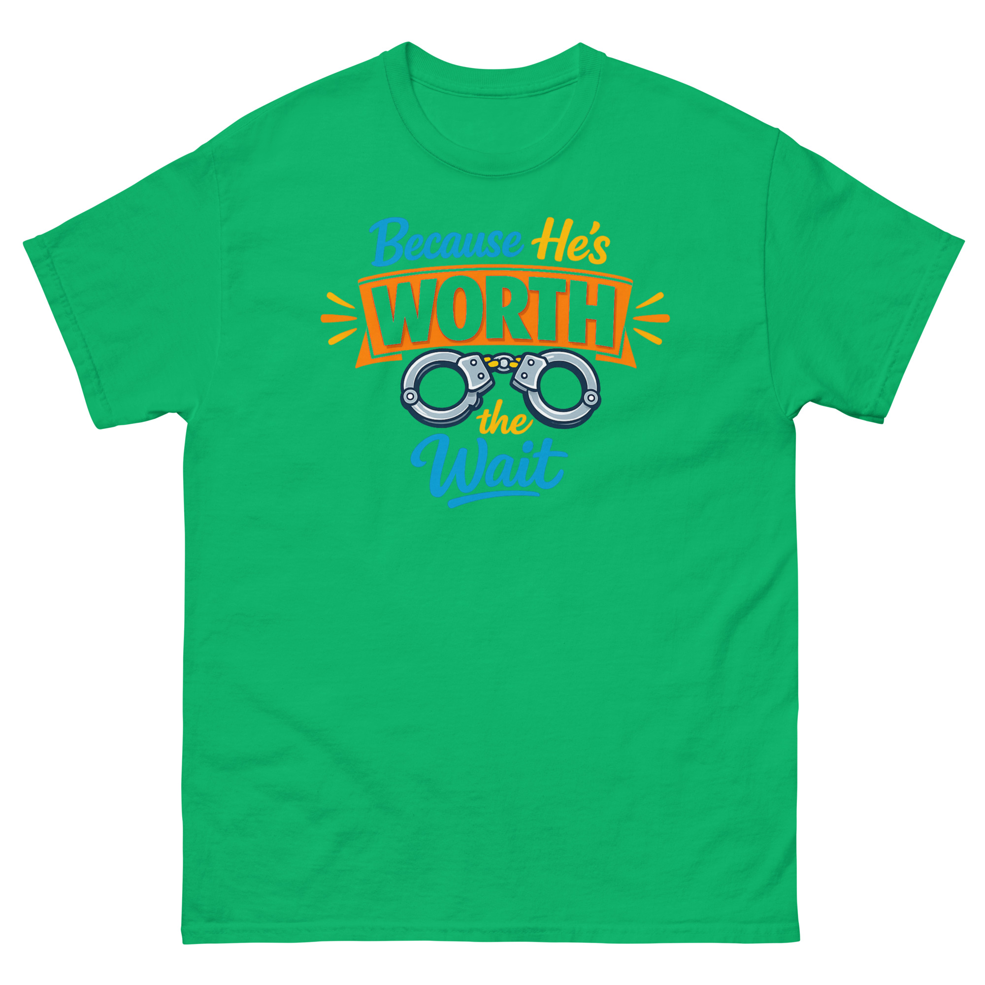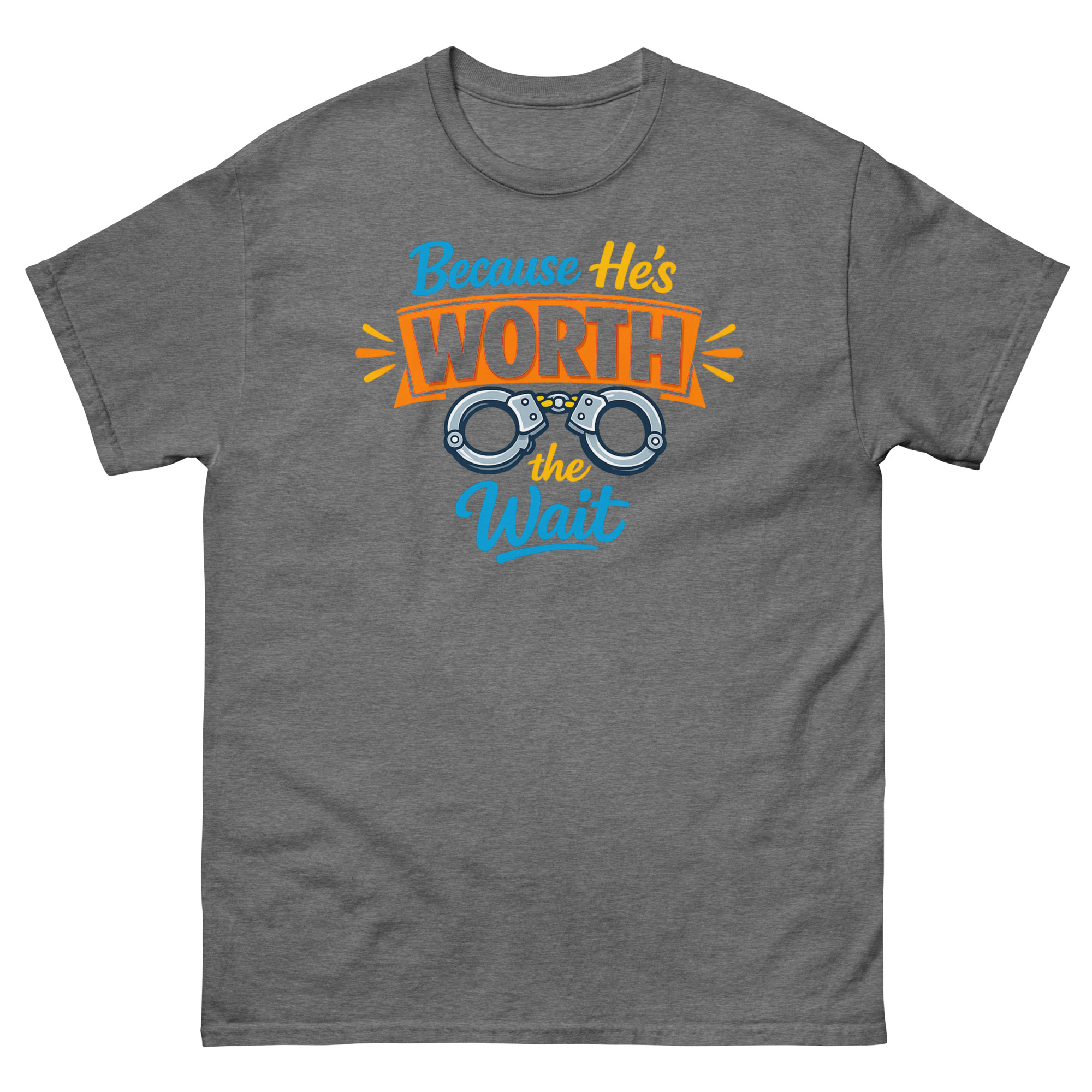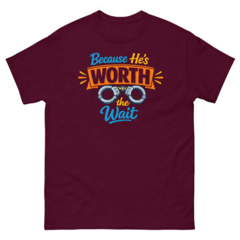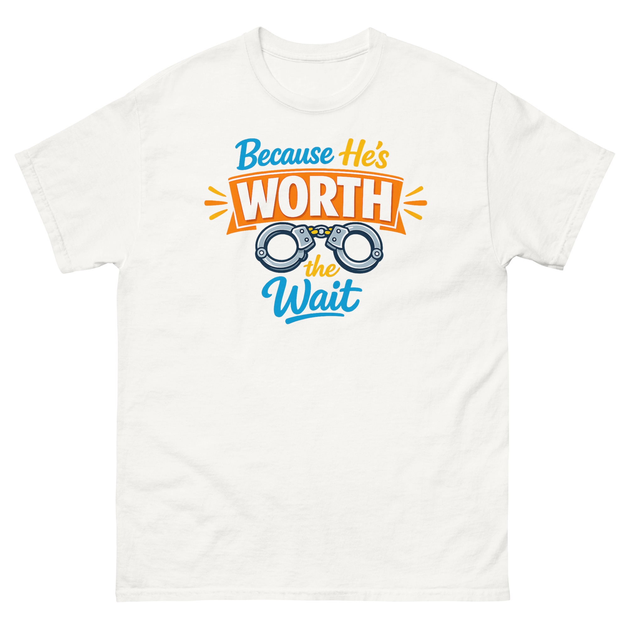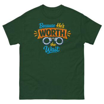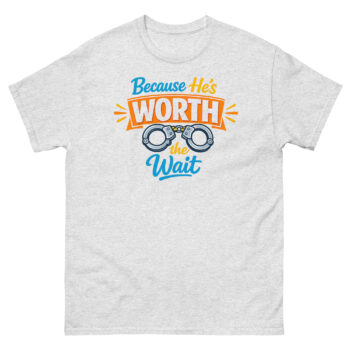 In the quiet strength of waiting, there’s a story that deserves to be worn with pride. This Because He’s Worth the Wait shirt is far more than simple apparel; it’s a crafted declaration of loyalty and resilience. Designed for the strong woman holding down the home front, this tee transforms the symbol of handcuffs into a badge of unbreakable commitment. Let’s explore how every stitch and print detail honors your journey.