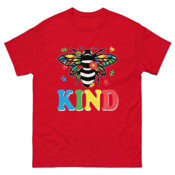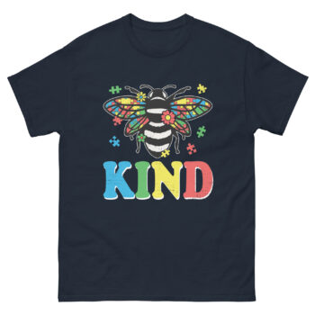 The puzzle wing bee t-shirt isn’t just cute—it’s symbolic. The autism puzzle pattern represents the complexity and beauty of neurodiversity, while the cheerful bee motif reinforces positivity. The rainbow “KIND” text adds a vibrant touch, making it an ideal autism kindness awareness tee for educators, parents, and allies.