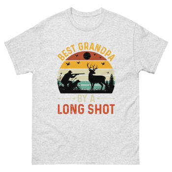 Beneath the scenic design, the bold text reads: “BEST GRANDPA BY A LONG SHOT”—a playful nod to both his shooting skills and his role as the family’s favorite elder. It’s a funny hunting gift idea for grandpa that he’ll proudly wear.