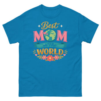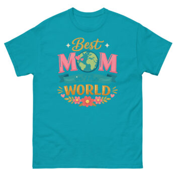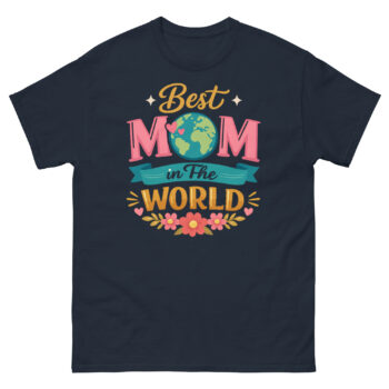 The Best Mom in The World T Shirt is a beautifully designed tee that offers a creative twist on a classic message. Its unique feature is the “O” in “MOM,” which is cleverly replaced with an illustrated Earth globe. This shirt is designed for any mom, making it a thoughtful unique gift for moms and a special piece of celebrate motherhood apparel.