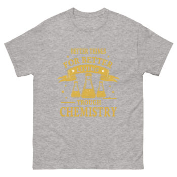 Have you ever stopped to appreciate how chemistry transforms our daily lives? From the medicines that heal us to the materials that surround us, chemistry truly enables better living. What if you could wear a shirt that celebrates this amazing science with both style and intelligence? We’ve formulated the perfect wearable tribute! Introducing the Better Living Through Chemistry T-Shirt, a brilliant chemistry humor shirt with beakers and slogan that honors both the history and future of chemical innovation. This isn’t just another science tee; it’s a declaration of appreciation for the molecular magic that shapes our world. Consequently, it’s designed to be the ultimate clever chemistry t shirt for scientists and teachers who want to share their passion with style.