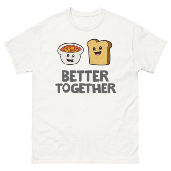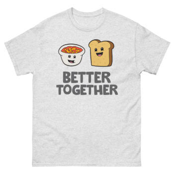 Have you ever thought about why some things just belong side-by-side? Think about a warm, inviting bowl of soup and a soft, crusty piece of bread. Separately, they’re nice. Together, they’re magic. This simple, joyful idea sparked the creation of our Better Together T-Shirt. It’s not just apparel; it’s a wearable smile and a cozy reminder of the people who make life sweeter. Designed for anyone who values connection, laughter, and a dash of whimsy, this tee turns everyday moments into little celebrations.