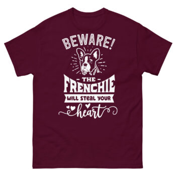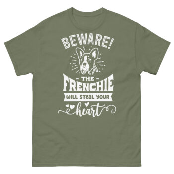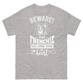 What if the most dangerous thing about a dog wasn’t its bark, but its power to completely capture your heart? This Beware the Frenchie shirt delivers the most adorable warning you’ll ever get. Featuring a charming French Bulldog illustration with the playful message “WILL STEAL YOUR heart,” this design is the ultimate funny frenchie graphic tee for anyone who knows the irresistible pull of these bat-eared companions.