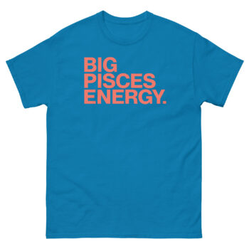 Big Pisces Energy T Shirt design came from a conversation about how Pisces get portrayed. Look around at most zodiac merch and you will find glitter, moons, and complicated illustrations of fish twisting through waves. That imagery works for some, but it misses a big chunk of the audience.