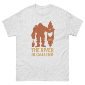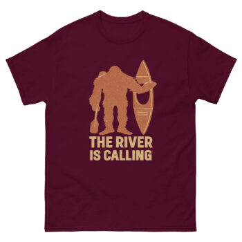 This river calling kayak shirt with Bigfoot design is a must-have for anyone who loves a good story with their scenery.