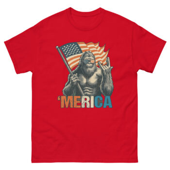 ‘Merica Bigfoot Shirt: Patriotic Sasquatch Tee for Cryptid Fans
