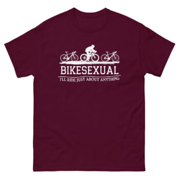 Don’t just tell people about your passion—wear it with pride and a sense of humor. This Bikesexual funny cycling shirt is the ultimate addition to any cyclist’s wardrobe. It’s the perfect gift for that friend who truly will ride anything or a fantastic treat for yourself.