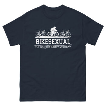 For those who can’t choose between MTB, road, gravel, or BMX — this shirt says it all. The “Bikesexual – I’ll Ride Just About Anything” tee is a funny, cheeky nod to every kind of cycling passion. Whether you’re a roadie, a mountain biker, or just love two wheels in any form, this shirt is guaranteed to get laughs. A perfect novelty gift for cyclists who don’t take life too seriously.