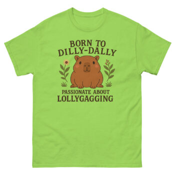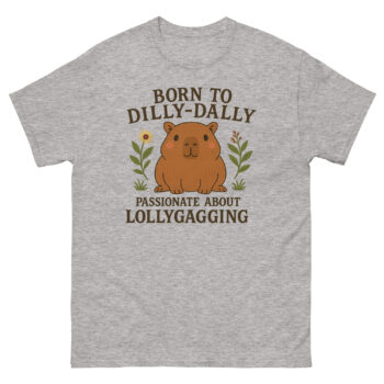 In a world that shouts “hustle,” what if your superpower was… dawdling? Welcome to a gentler philosophy, a celebration of the art of taking your sweet time. Our Born to Dilly Dally Shirt is more than apparel; it’s a wearable sigh of relief. This charming tee, starring the internet’s most serene rodent, the capybara, is your official uniform for slow living and intentional relaxation.