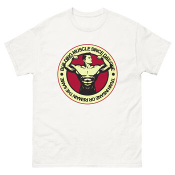 Building Muscle Since Day One T-Shirt – Train Insane or Remain the Same