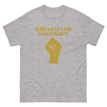 The Bureau of Land Management T-Shirt is a bold, conversation-starting piece that celebrates your love for the land, nature, and outdoor stewardship. With a minimalist yet powerful raised-fist design symbolizing unity and empowerment, this shirt is for anyone who believes in protecting the planet and public lands.