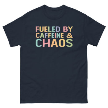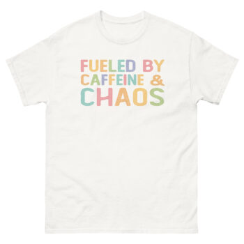 Buy your Caffeine and Chaos Tee now and turn your daily fuel into a fashion statement!