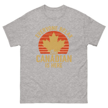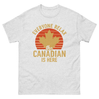 Hey there, fellow Canuck and friend of Canada! Are you searching for the perfect Canada pride shirt that shows off your love for the Great White North in a fun and stylish way? Well, you’ve found it. Our “Everyone Relax, the Canadian is Here” T-shirt is more than just apparel; it’s a conversation starter, a piece of home, and a badge of honor. This iconic maple leaf T-shirt blends lighthearted humor with genuine national pride, making Canadian pride T-shirt an ideal choice for anyone with a connection to Canada.