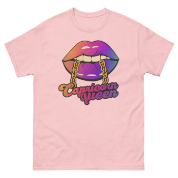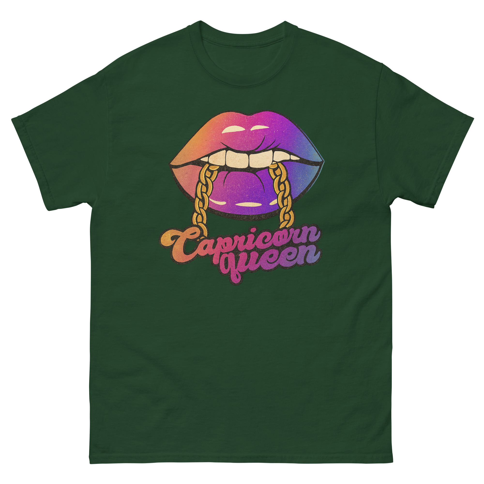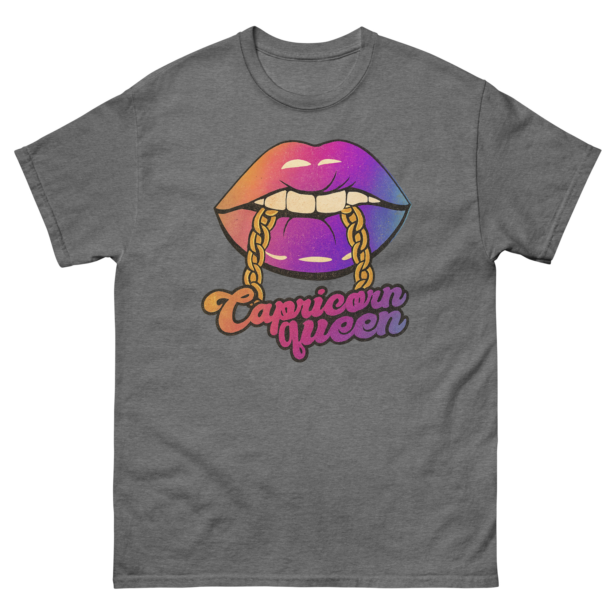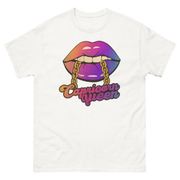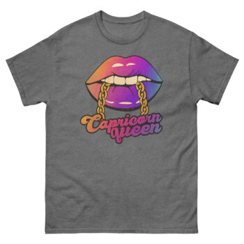 We created this shirt for a specific type of person: the woman who is both the CEO and the muse. Our design philosophy centers on empowering you through wearable art. We noticed that many zodiac shirts were simple and generic. But a Capricorn Queen? She is anything but basic. She is a force of nature, a baddie with a plan and the style to match. Consequently, we designed a graphic that captures this unique duality: the sensual allure of glossy, gradient lips combined with the unbreakable strength of a gold chain they’re biting. This isn’t just a print; it’s a badge of honor for every goal-getter.