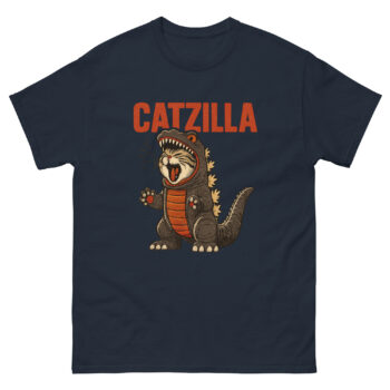 Both Godzilla and house cats have a lot in common. Firstly, they both demand attention on their own terms. Secondly, they can cause surprising amounts of “destruction” (one to cities, the other to toilet paper rolls). Finally, they both believe they are the rightful rulers of their domain. Therefore, we thought, why not combine these two iconic figures? The result is Catzilla, a design that perfectly captures this hilarious comparison. This comic style catzilla shirt isn’t just a random idea; it’s a tribute to every cat’s dramatic spirit.