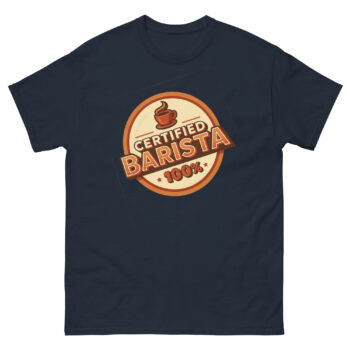 Let’s settle this once and for all—not all coffee lovers are created equal. Some of us are certified enthusiasts, and this “Certified Barista 100% Coffee Lover T-Shirt is your badge of honor. Whether you pull espresso shots for a living or just obsess over your home brew, this barista t-shirt for coffee professionals declares your expertise in bold, coffee-toned typography.