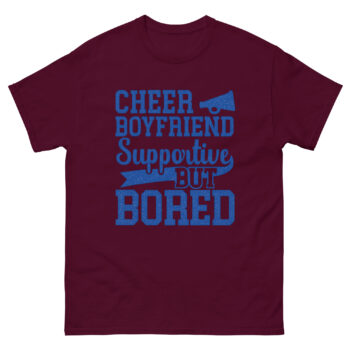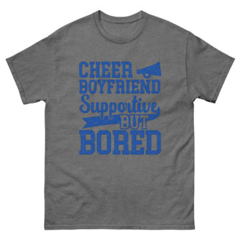 Let’s be honest: love means sometimes spending your weekends on cold bleachers, surrounded by spirited crowds, for a sport you might not fully understand. The Cheer Boyfriend Shirt is here to celebrate every guy who shows up, supports his partner, and maybe checks the game clock a few times. This isn’t just another men cheer boyfriend shirt; it’s a hilarious and relatable badge of honor for the unsung heroes of the cheerleading world. It perfectly captures the blend of dedication and humorous honesty that defines a true supportive cheer boyfriend tee.