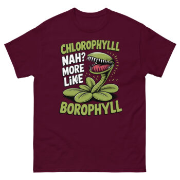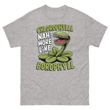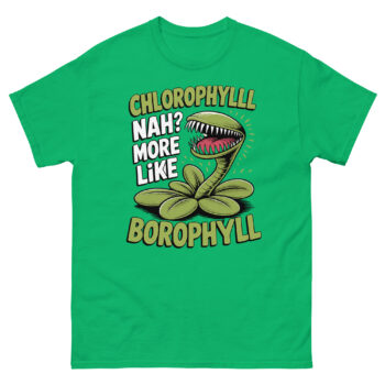 Remember that moment in biology class when your teacher droned on about photosynthesis? This shirt is for everyone who wanted to shout back with a perfectly timed, hilarious movie quote. Welcome to the Chlorophyll More Like Borophyll Shirt, a wearable piece of 90s comedy history that finally says what we were all thinking.