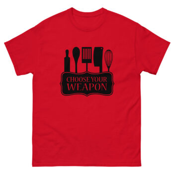 Gear up for culinary combat with this bold “Choose Your Weapon” shirt — perfect for chefs, BBQ lovers, bakers, or anyone who takes cooking seriously (and with a smile). A great gift for foodies who love a little fire in the kitchen.