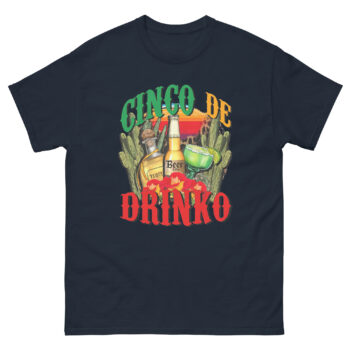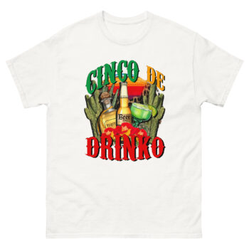 Celebrate Cinco de Mayo with shots, beer, and laughs in this hilarious “Cinco de Drinko” shirt! Featuring tequila, margaritas, beer bottles, and festive cacti, this is the ultimate party tee for bar crawls, festivals, or backyard fiestas.
