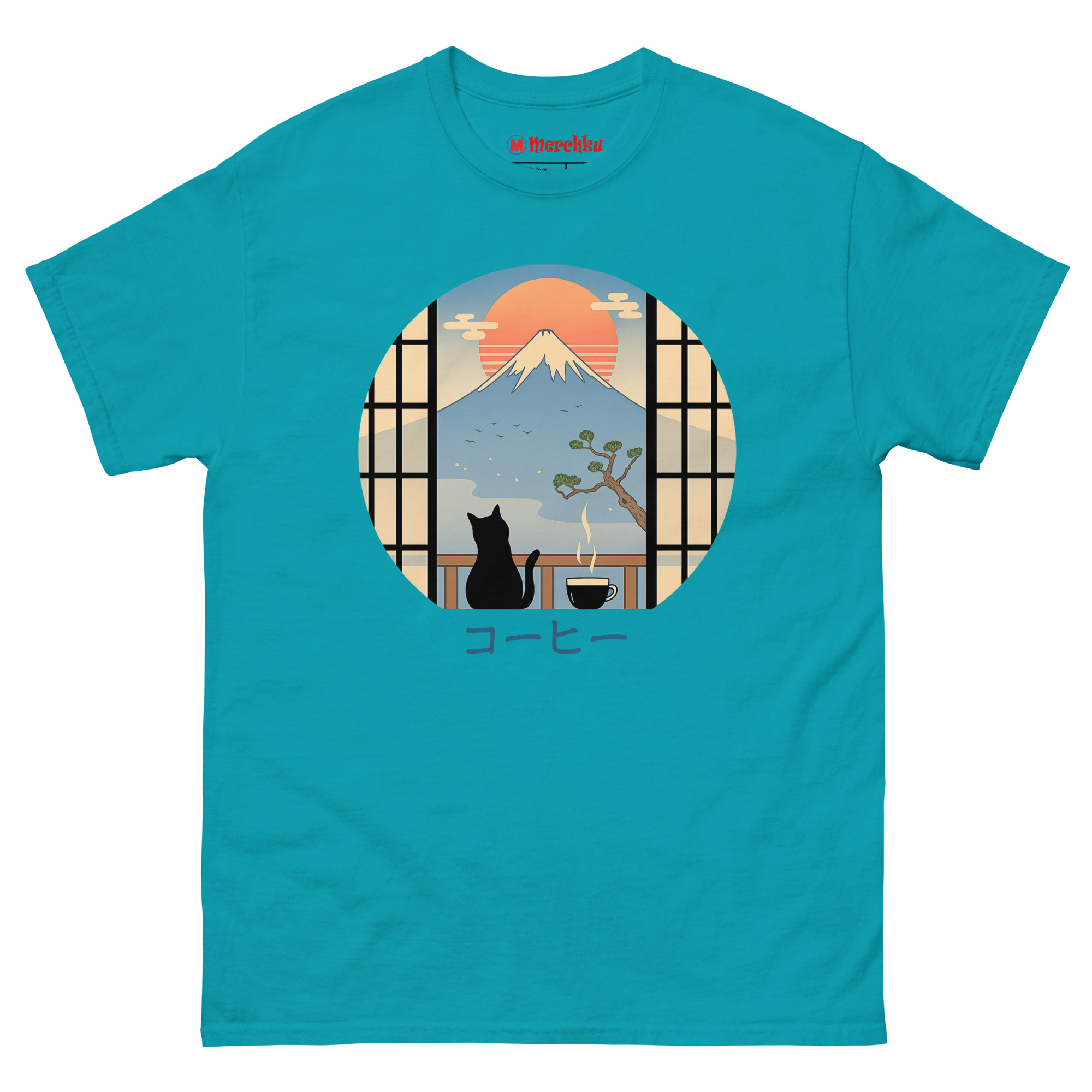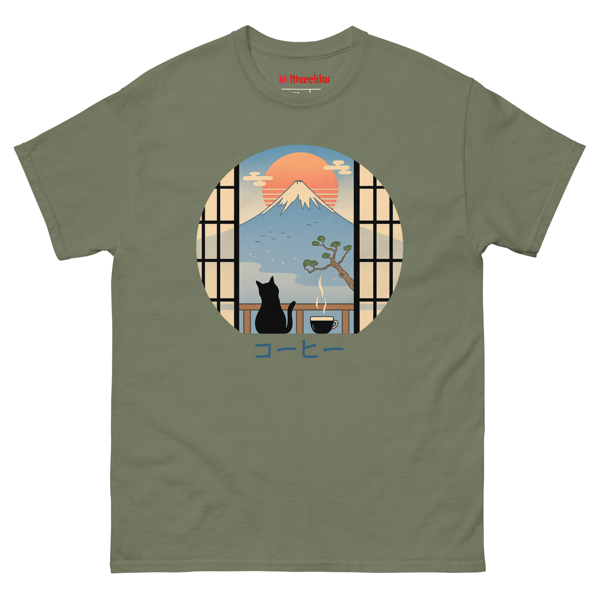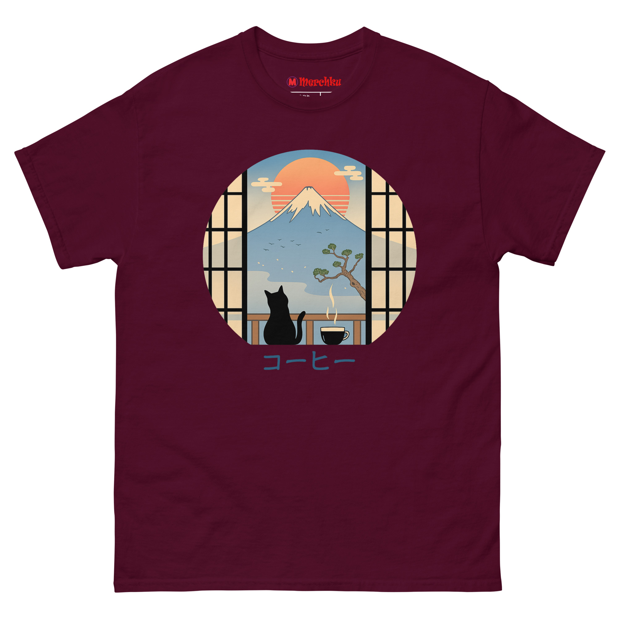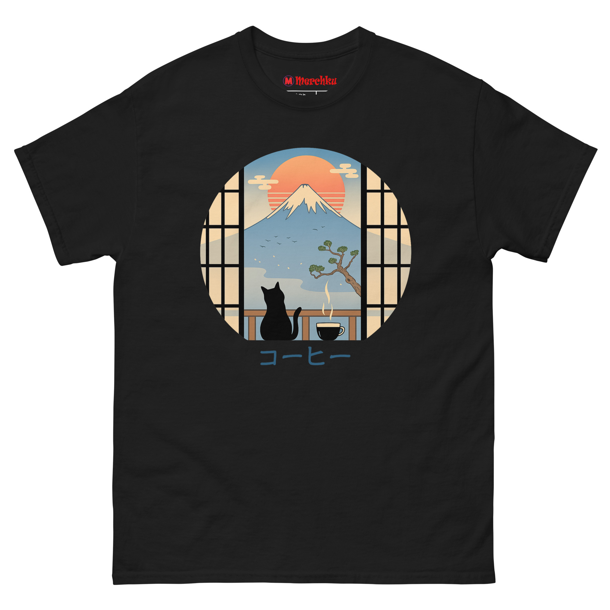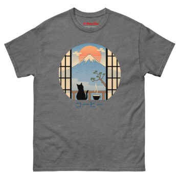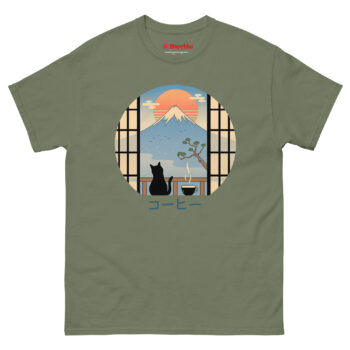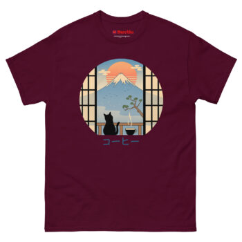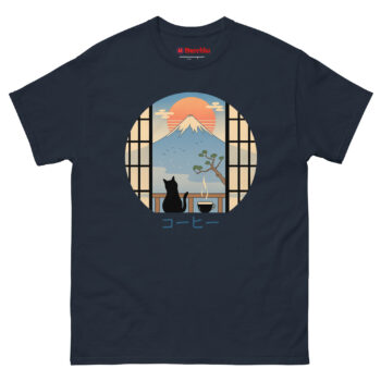 If your ideal morning involves coffee, cats, and a moment of peace before the daily rush, the Coffee Cat in Mt Fuji T Shirt belongs in your wardrobe. It works for travelers who miss Japan’s beauty, artists who appreciate minimalist design, and anyone who believes cats make everything better. The circular window into that serene scene travels with you wherever you go. Grab yours today and carry a little Japanese tranquility into your everyday life.