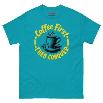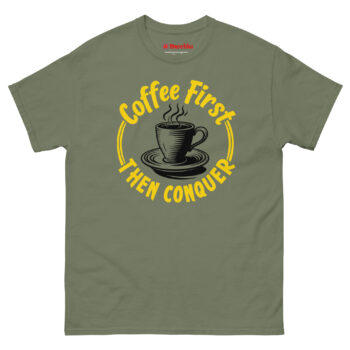 The philosophy? Simple. Ritual precedes performance. This Coffee First Then Conquer T Shirt acknowledges that you can’t pour from an empty cup or conquer on an empty tank. It’s for people who reject “hustle culture” that demands instant productivity. Instead, you prime yourself first. You admit you need the fuel. Then you do the work.