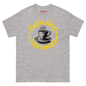Stop wearing boring blank tees that don’t match your caffeine ritual. This Coffee First Then Conquer T Shirt combines vintage badge style with heavyweight comfort, perfect for coffee snobs who appreciate design details, gym lovers needing pre-workout motivation, or anyone in the 5 AM club who understands that greatness starts after the first sip. Whether you’re hunting for coffee lover gift ideas, motivational morning routine apparel, or funny coffee quote shirts that actually look good, this tee delivers. Click add-to-cart now and wear your caffeinated conquest philosophy with pride.
