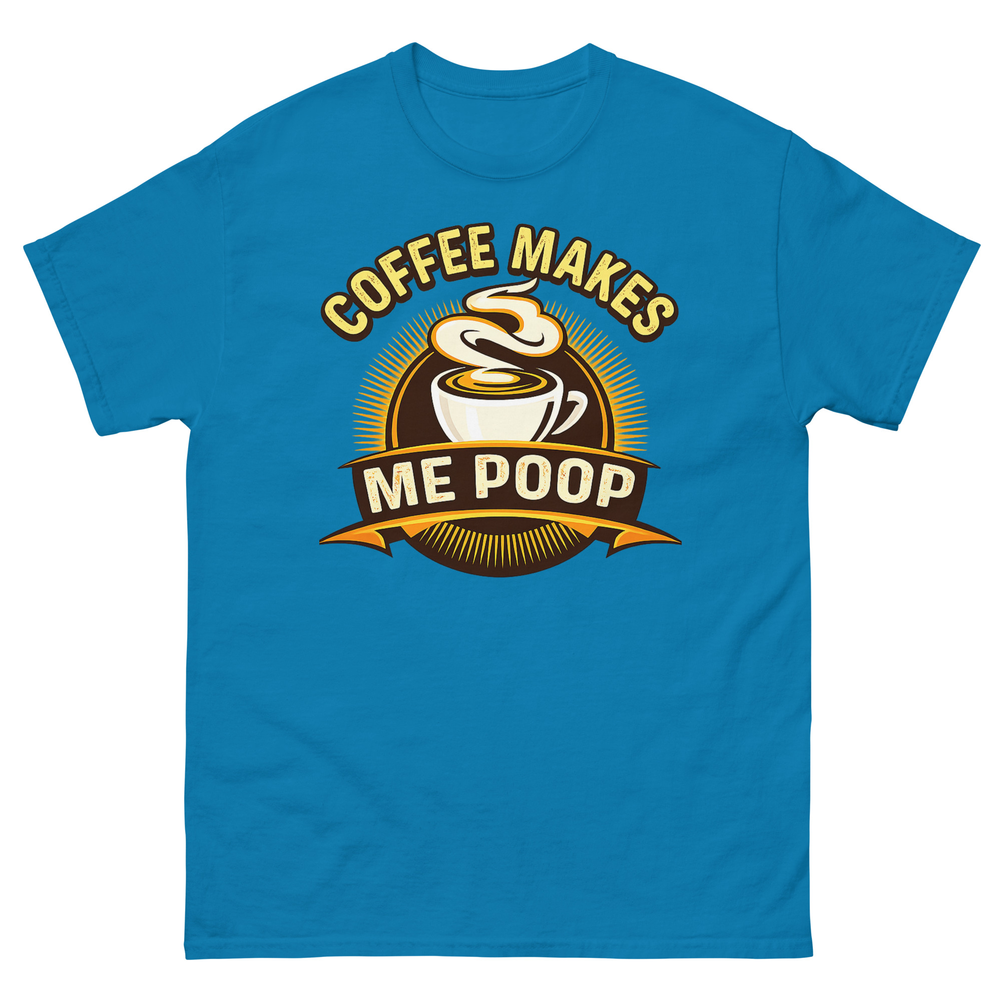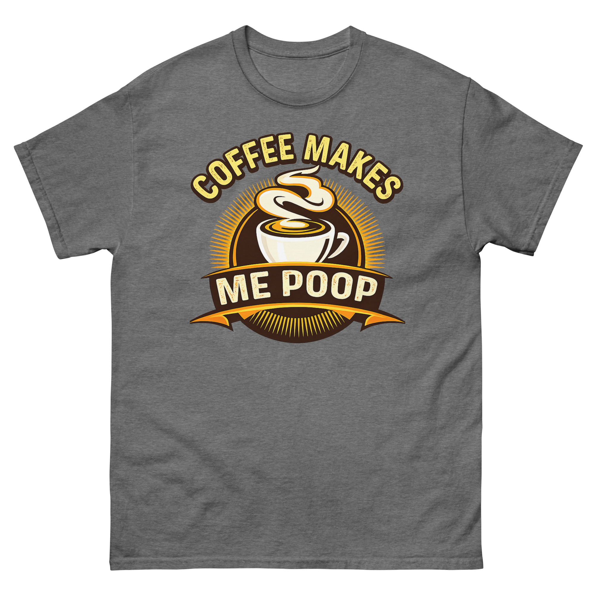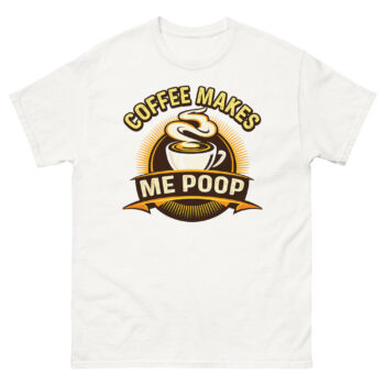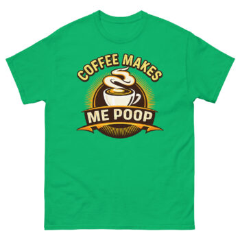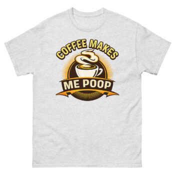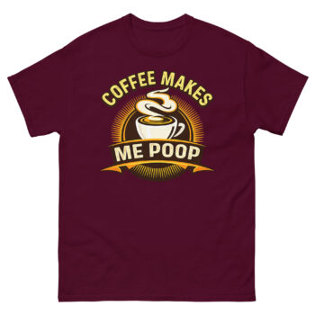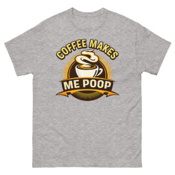 Coffee Makes Me Poop Shirt Made from a pre-shrunk jersey knit, this shirt is designed for all-day comfort right out of the box. The fabric is breathable and gets even softer with each wash. Additionally, the tubular construction means there are no uncomfortable side seams, so it sits smoothly on your body. It’s the ideal funny morning routine clothing because it’s as comfortable for your Saturday errands as it is for your first cup of coffee.