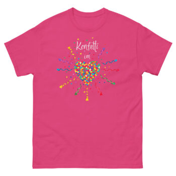 Ready to wear your inner celebration on your sleeve? The Confetti Im The Heart T Shirt is your ultimate positive energy streetwear piece. This colorful heart explosion top is ideal for birthdays, celebrations, or any day you want to remind yourself and others that joy is an inside job. It makes a fantastic aesthetic Konfetti im Herzen shirt for the person who makes every moment feel special. Don’t wait to share your sparkle, click ‘Add to Cart’ now to get your official festive heart artwork tee delivered before your next celebration.