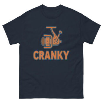 Some fishermen get cranky when the fish won’t bite—but this shirt makes the mood a joke! The “Cranky” Fishing Shirt is a clever pun that combines the fishing reel crank with a funny attitude.