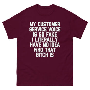 Let’s be honest: if you work in customer service, retail, or any job where you talk to people, you have two voices. There’s your real voice, and then there’s the voice—that bright, cheerful, and slightly higher-pitched version of yourself that comes out to play at work. This iconic customer service funny quotes t shirt is for everyone who has ever wondered who that polite, patient person on the phone really is. It’s not just a piece of clothing; it’s a badge of honor and a burst of customer service humor that your entire team will understand.