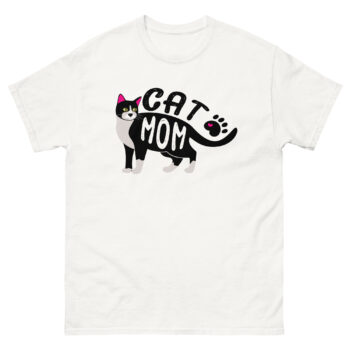 Celebrate the bond between you and your fur baby with this adorable Cat Mom T-Shirt. Featuring a playful black and white kitty with the words “Cat Mom” integrated into the design, this tee is a must-have for any proud cat parent.