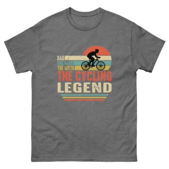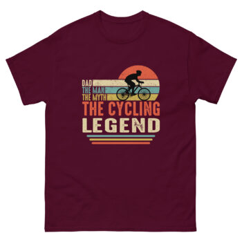 Honor the cycling legend in your life with this retro-themed t-shirt. Featuring bold vintage stripes and a rider silhouette, this tee celebrates dads who live for the road or trail. A thoughtful cycling gift for Father’s Day, birthdays, or Christmas, it’s the perfect way to show appreciation for a dad who truly is The Man, The Myth, The Legend.