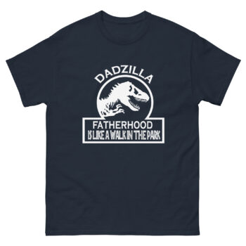 Featuring a roaring T-Rex silhouette and the tagline “Fatherhood is like a walk in the park… Jurassic Park!”, this funny dad dinosaur shirt is the ultimate way for dads to show off their parenting pride (and sense of humor).