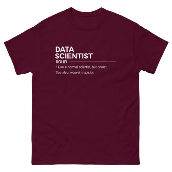 Forget literal and boring job descriptions. This tee reframes your entire identity with intelligent humor. Styled as a classic dictionary entry, the design reads: “DATA SCIENTIST noun 1. Like a normal scientist, but cooler. See also, wizard, magician.”