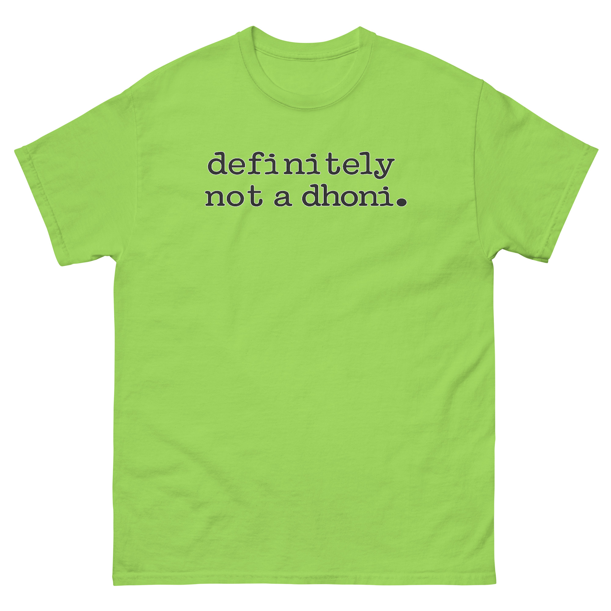 Definitely Not Dhoni T Shirt: Minimalist Cricket Humor for the Honest Fan