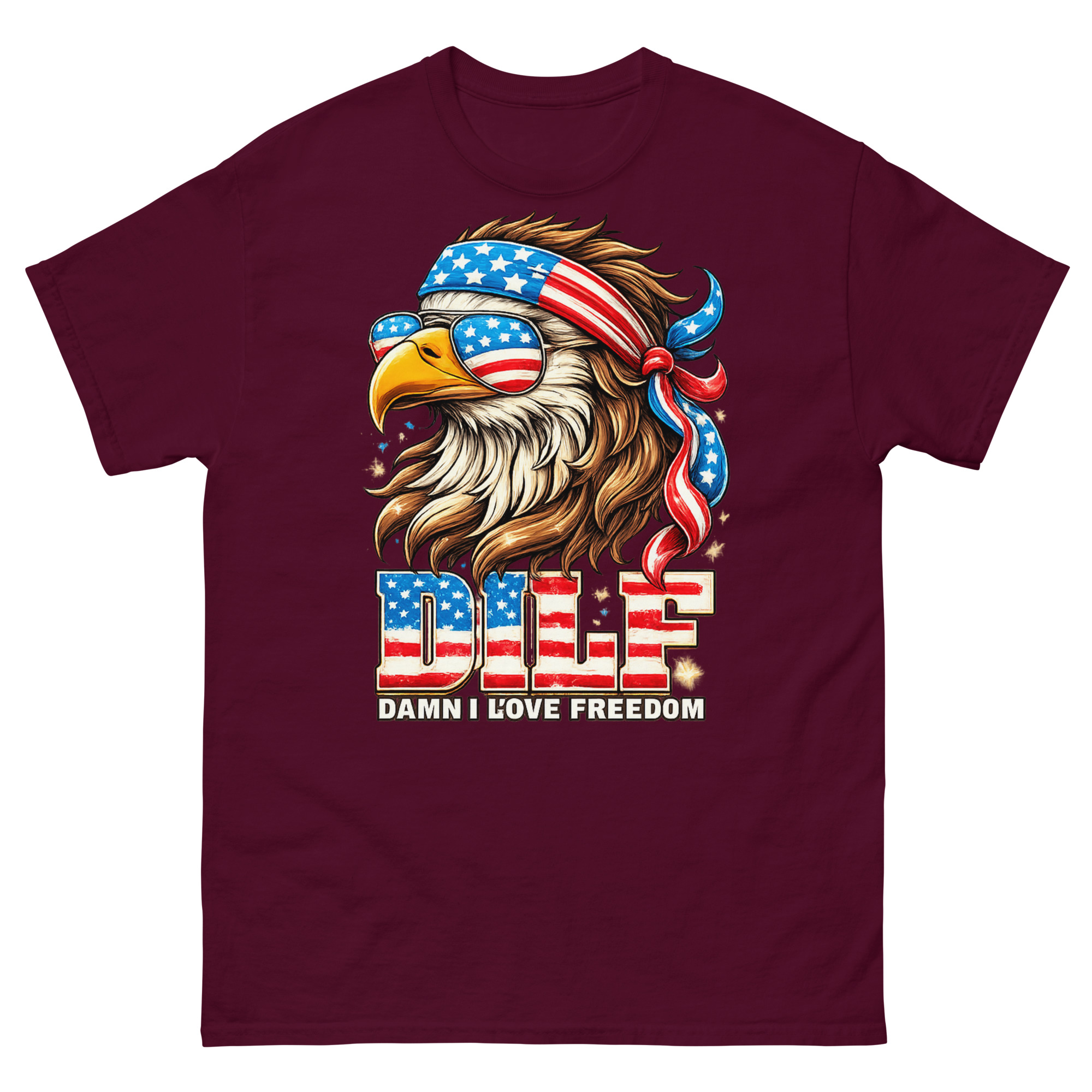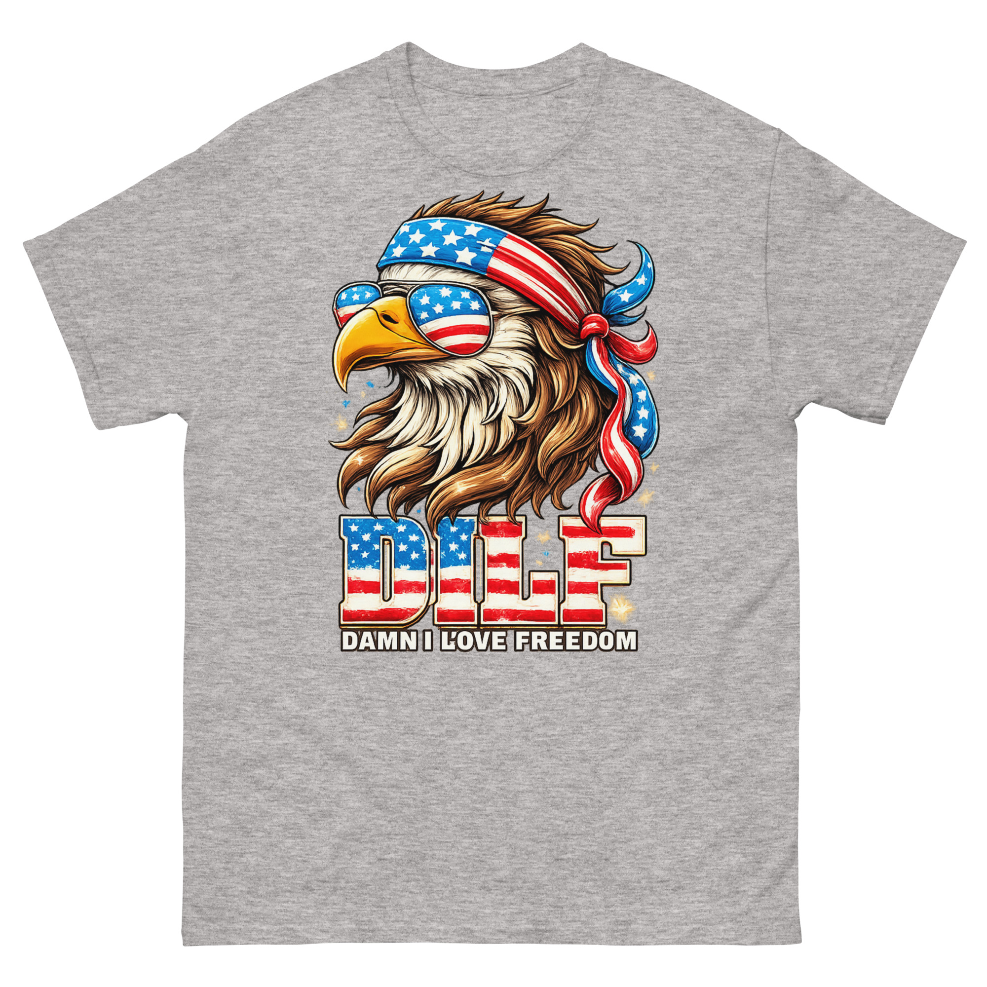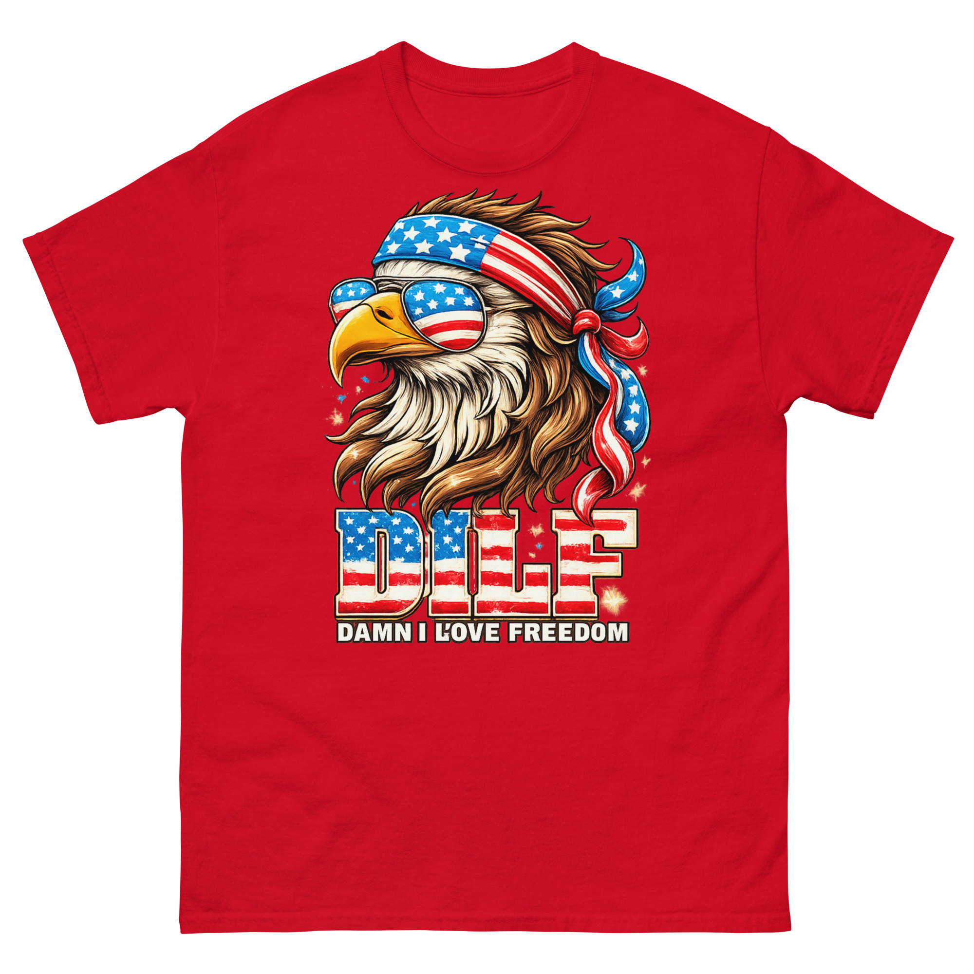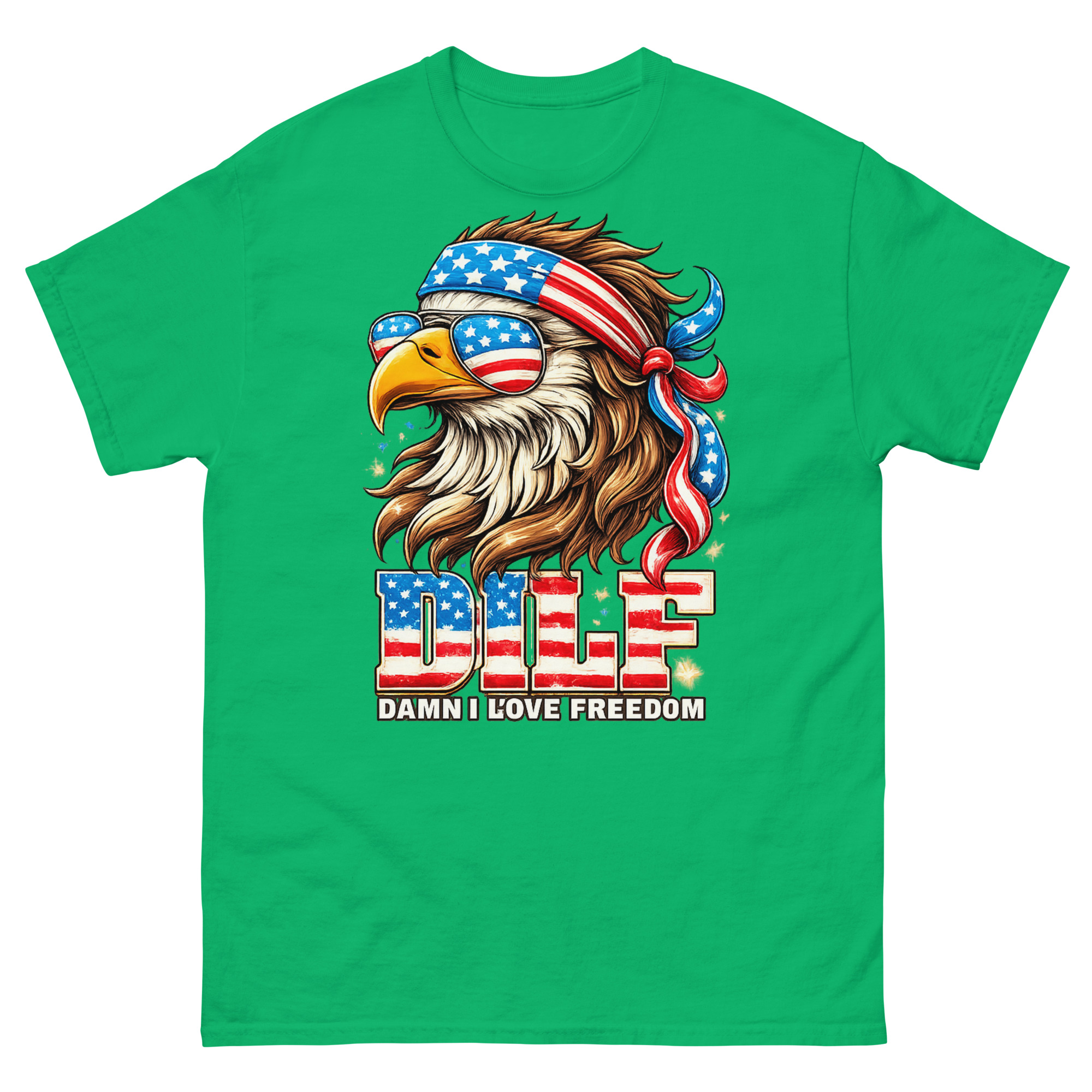 The DILF Damn I Love Freedom Shirt is a cool, humorous patriotic tee featuring a bold bald eagle graphic. This unique design offers a satirical take on American pride, combining high-quality 100% pure cotton materials with a standout message. It’s designed for dads, patriots, and anyone who celebrates freedom with a sense of humor and style.