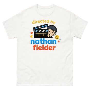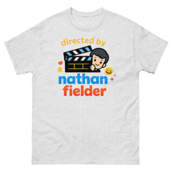 Our designer had a breakthrough: “What if Nathan, the ultimate docu-comedy puppeteer, was a cute, harmless cartoon?” Imagine that. The man known for orchestrated chaos, reimagined with kawaii sparkles and a happy clapperboard. The cheerful, childlike style creates a hilarious disconnect. It softens the cringe with pure cute. Wearing this tee is like whispering an inside joke to yourself—a reminder that life’s messiness might just be brilliantly directed. This approach creates a unique piece of meta humor you can wear.
