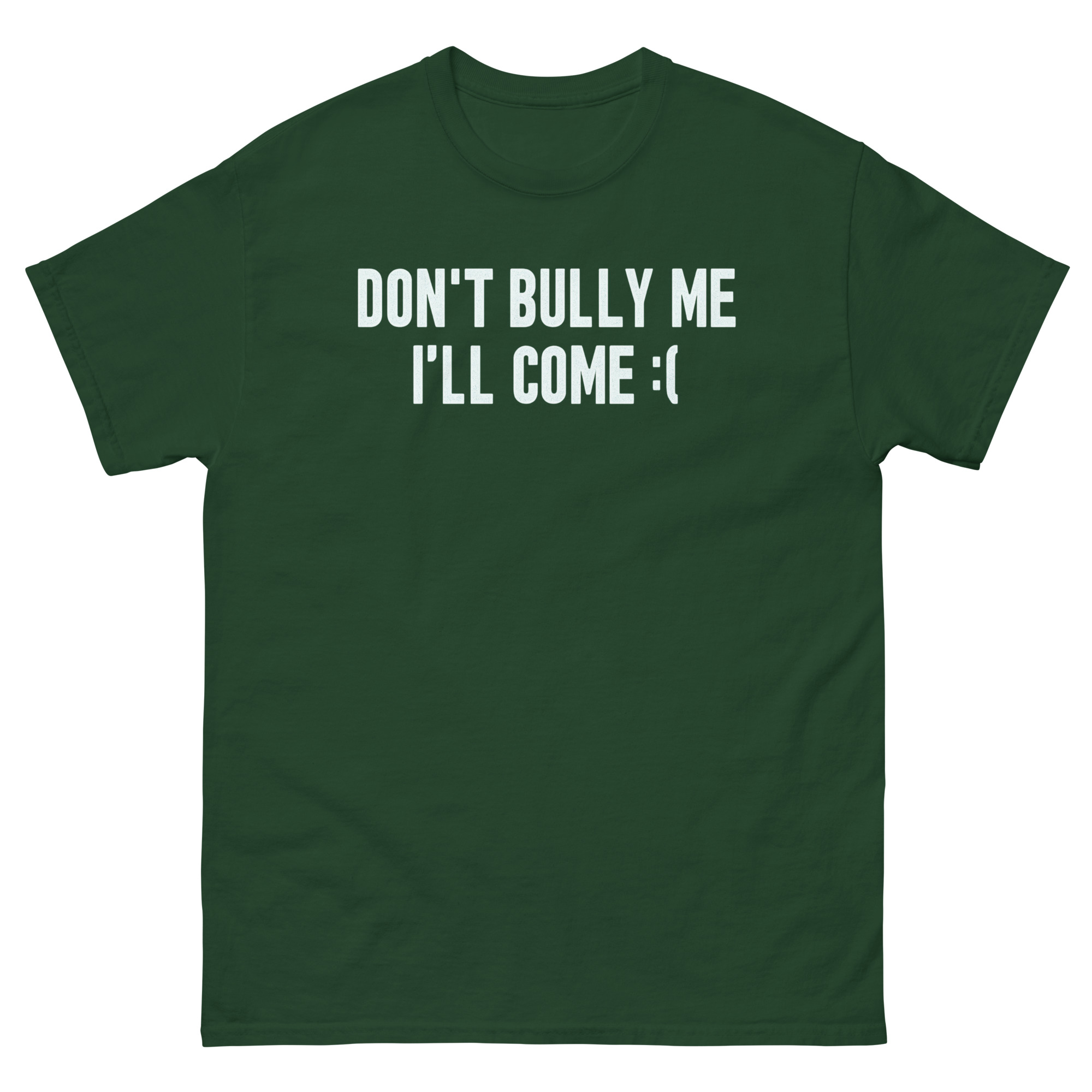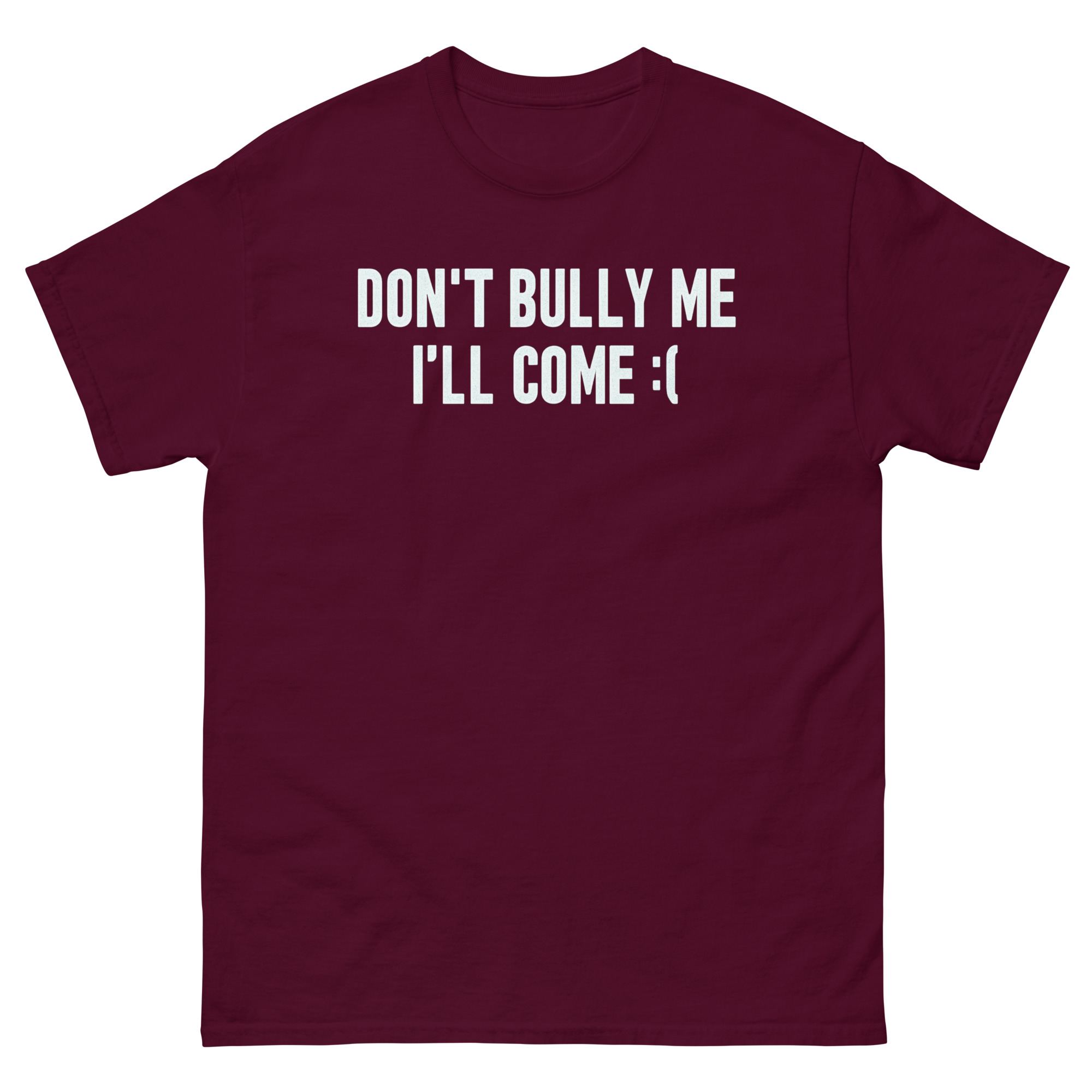 Why just share the screenshot when you can wear the source material? Stop laughing from the sidelines and step into the spotlight. Claim your Don’t Bully Me I’ll Come Shirt today and own a piece of internet legend.
