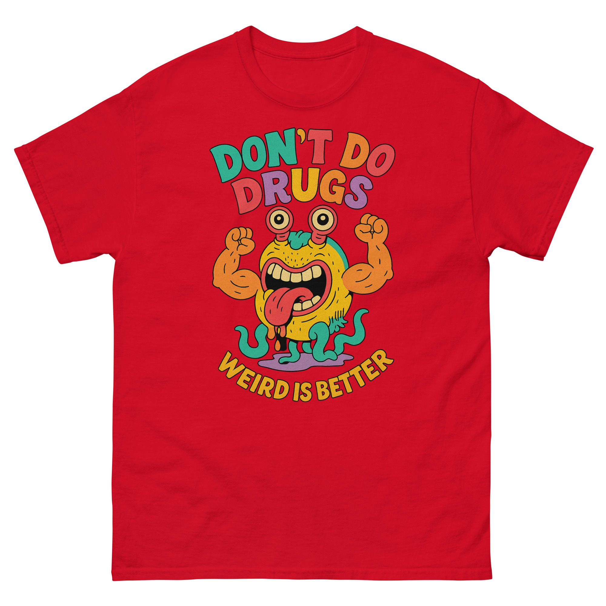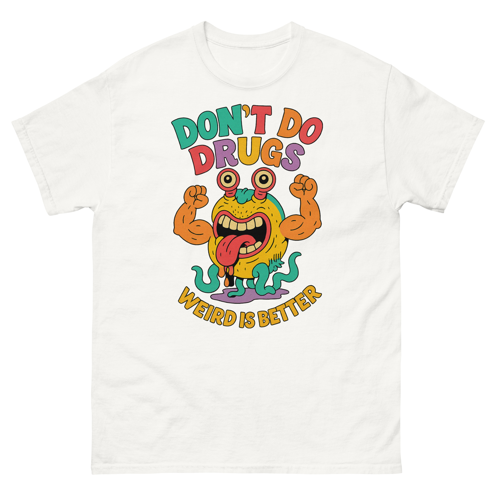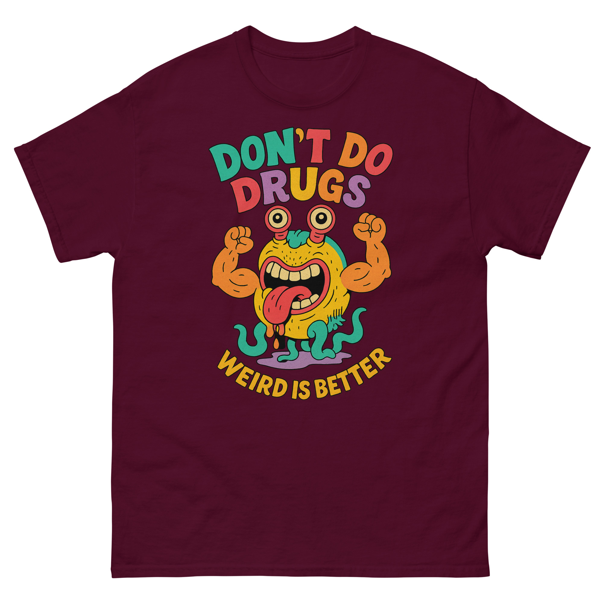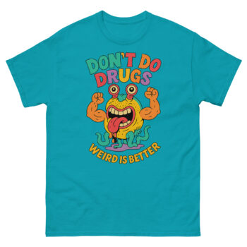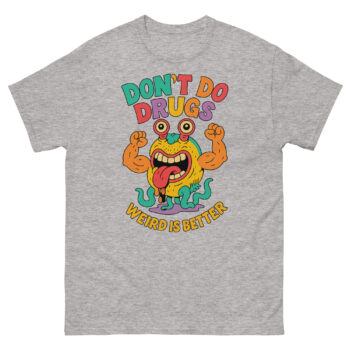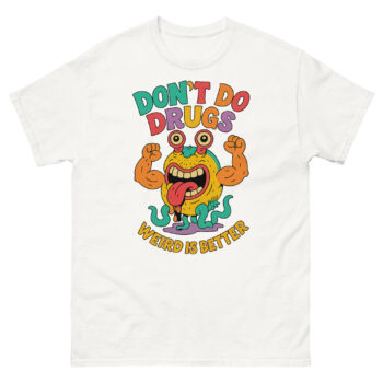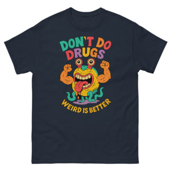 Forget boring lectures and scary warnings. What if the best way to say “stay clean” was with a burst of color and a hilarious monster? Enter the Don’t Do Drugs Shirt, a revolutionary piece that uses psychedelic art to promote a powerfully positive message. This isn’t just a slogan tee; it’s a declaration that your natural, creative, wonderfully weirdcore self is more than enough. Featuring a multi-eyed, flexing creature with wild tentacles, this design shouts “WEIRD IS BETTER” in the most vibrant way possible.